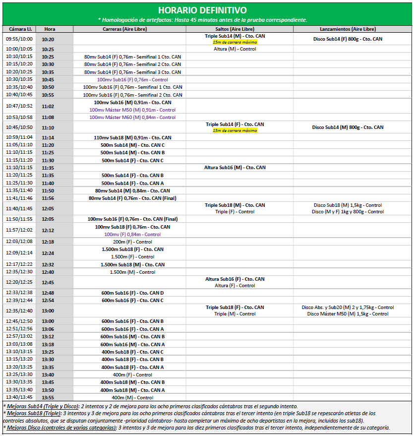 Circular FCA 30/2024 – Reglamento y horario (DEFINITIVO) Atletas inscritos (DEFINITIVO) Listas de salida – Semifinales femeninas de 80mv Sub14 y 100mv Sub16 * Competición de ámbito Nacional 2.