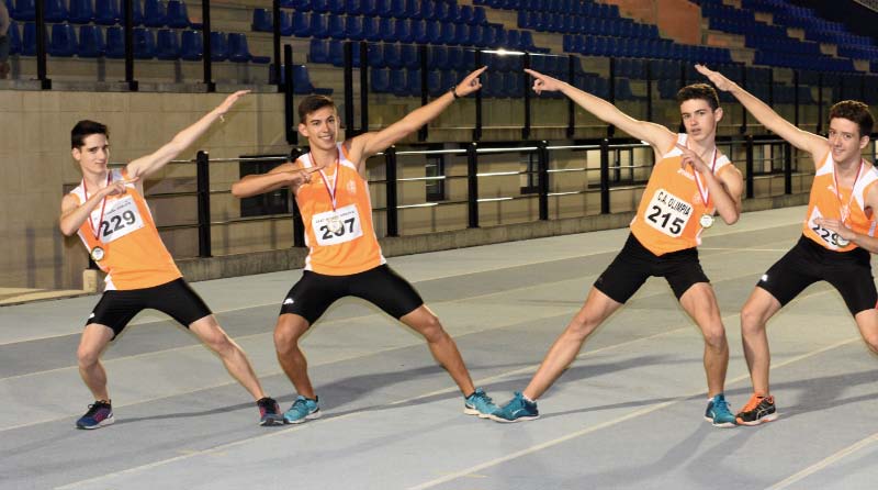 La tarde de atletismo sirvió además para decidir los campeonatos autonómicos de relevos 4×100 en categoría cadete, títulos que fueron para el Olimpia en hombres y el Piélagos en mujeres. Con 46.14, los naranjas batieron en una centésima el record cántabro de la especialidad (46.15), en poder de la selección regional desde el Nacional por comunidades de Cartagena del pasado mes de junio. Formaron el equipo Álvaro Celis, Jorge García, Dámaso Tejero y Álvaro Olavarría. Torrelavega (47.90) y Piélagos (48.42) fueron plata y bronce.