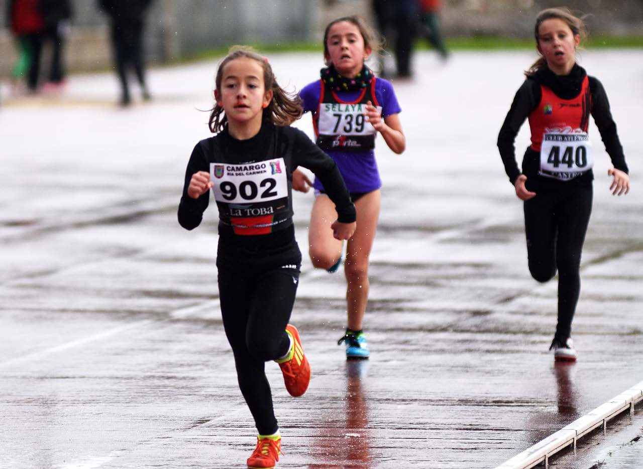 En categoría infantil femenina el triunfo correspondió a Ania San Román (Atletismo Selaya-Reparte), vencedora con un tiempo de 11:03.2-. Se impuso por delante de su compañera de equipo Paula García y de la vallisoletana Lucía Sanz, que competía fuera de concurso. Así las cosas, el bronce autonómico fue para la cuarta clasificada en la prueba, Andrea Fernández (Atlético España de Cueto).